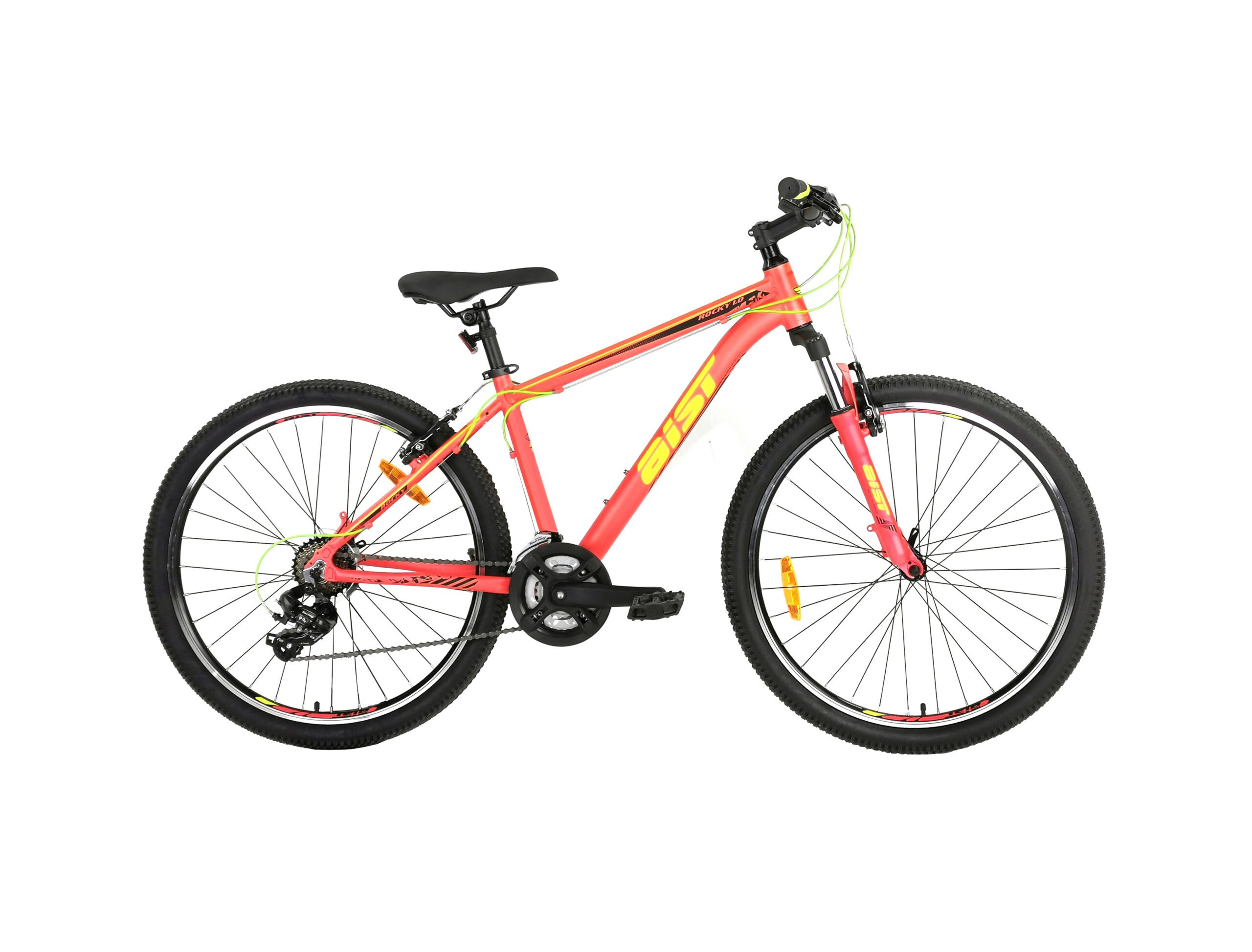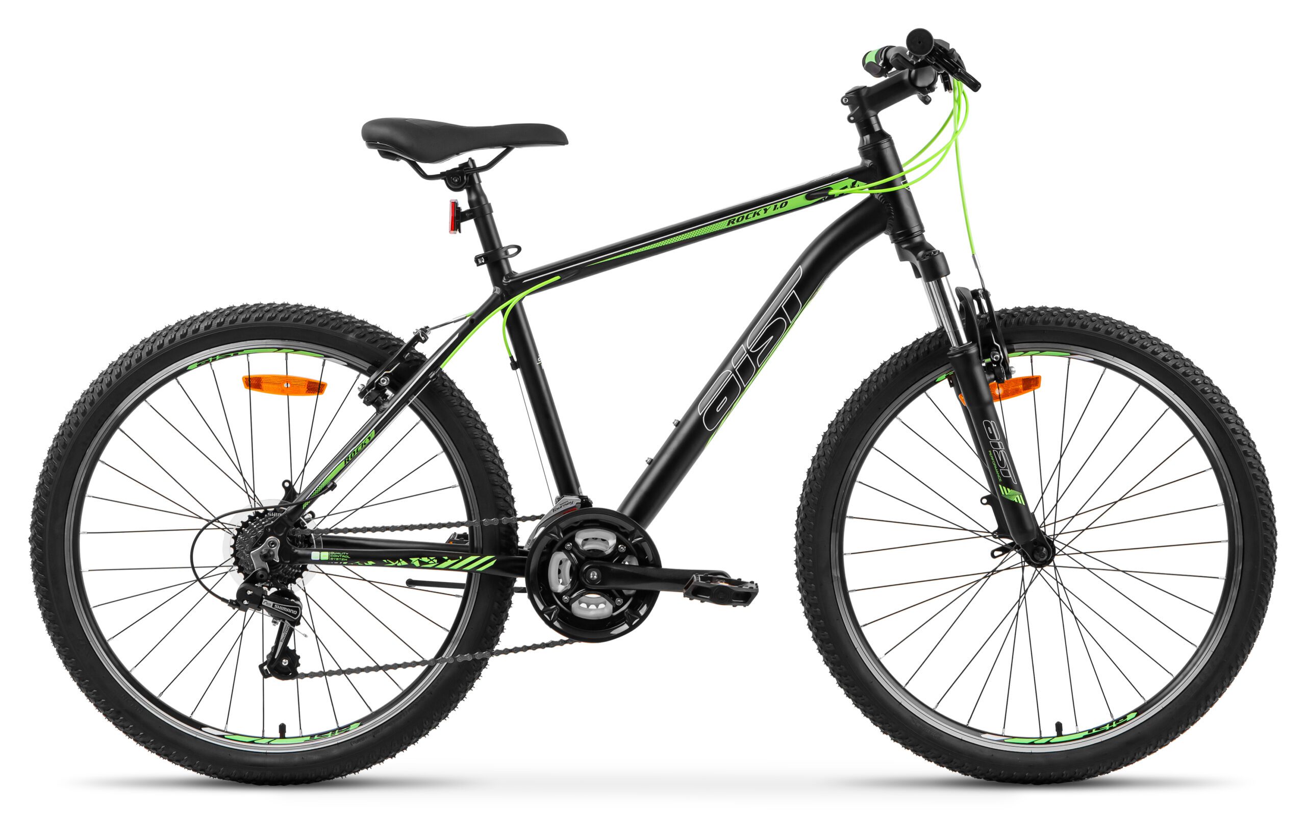 Aist Rocky 1.0 26″ — Горный велосипед разработан для комфортной езды как в городе, так и за его приделами. Амортизационная вилка, позволяет сглаживать все неровности дорог, принося только удовольствие от эксплуатации велосипеда. Трансмиссия из 21-скоростей позволяет менять ход велосипеда в зависимости от преград на пути и дорожных условий. Прочная, легкая и не подвержена коррозии рама изготовлена из алюминия, а двойные усиленные обода велосипеда отличаются особой прочностью. За безопасную остановку отвечает класcическая система тормозов V-brake.