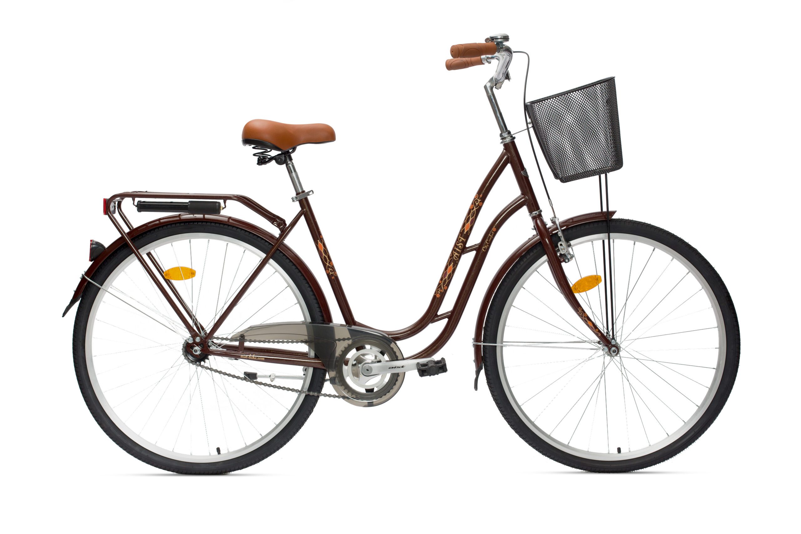 Велосипед AIST Tango 1.0 28″ стильный и современный велосипед, имеет заниженную раму и полную защиту цепи, что является большим преимуществом для прекрасных дам, и позволит им выбрать свободный стиль одежды. Велосипед городского типа, прекрасно подойдет для прогулок по парку, набережной или городским дорогам. Также велосипед оснащен жесткой вилкой, что позволяет набрать хорошую скорость на ровной дороге и имеет широкое супер комфортное сиденье. Колеса размером 28 дюймов обладают хорошим накатом, а задний ножной и передний ободной механический тормоза обеспечат хорошее торможение и вашу безопасность. Так же, велосипед прекрасно укомплектован багажником, корзиной, защитой от грязи и воды в виде комплекта полноразмерных щитков, переднего и заднего отражателя. Цвет рамы в двух оттенках: коричневый и нежно бежевый.